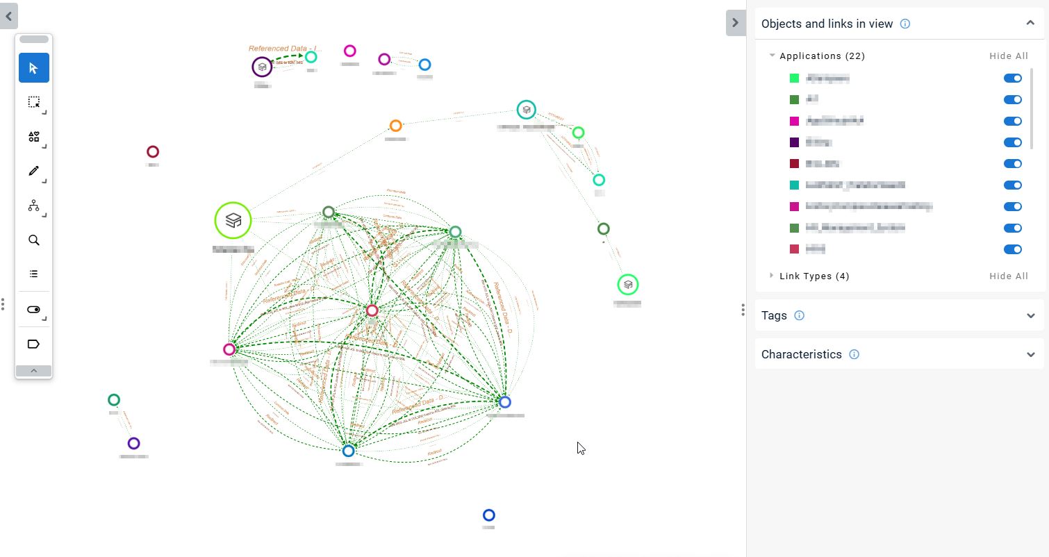 - the properties of an application or an interaction between applications are available in the Characteristics section of the right-panel: