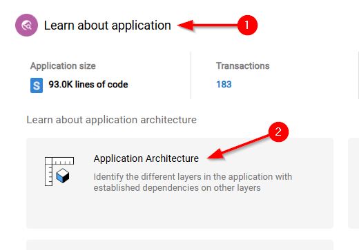 Click Ready to view, expand the Learn about application? section and select the Application Architectur tile to access the default view: