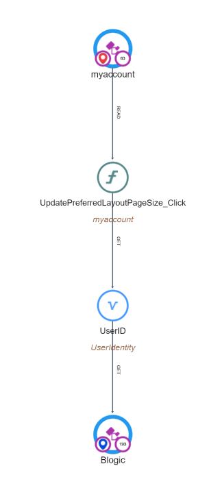 The path is then displayed from the calling object “myaccount” and the original selected object “Blogic”: