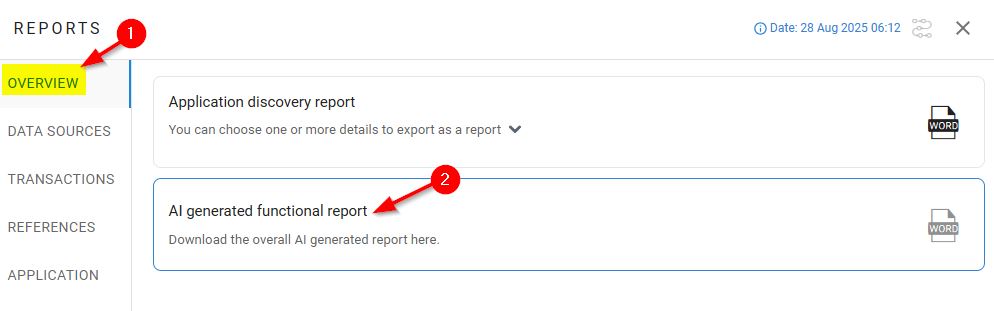 | ≥ 3.5.0-funcrel | Use the AI generated functional report option available via the Download Reports button:![]() ![]() |