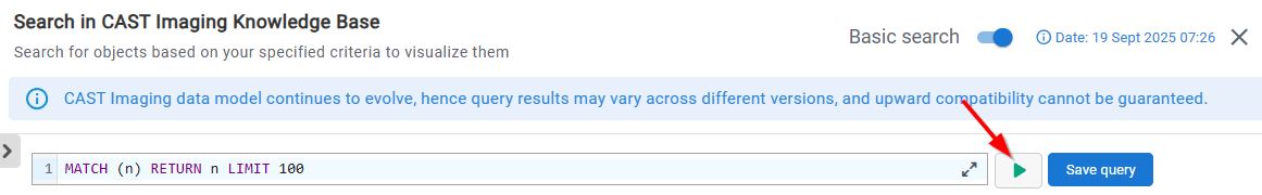 CAST Imaging offers a comprehensive and advanced search facility, allowing you to find exactly what you are looking for. The search will return objects present in your application (not just those currently visible (see Spotlight search) in the view), based on the search string or cypher query you enter.
