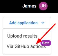 In your CAST Imaging Express account, click Add Application > Via GitHub Actions: