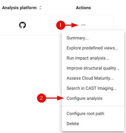 If you have navigated away from the instructions pop-up displayed in CAST Imaging Express, you can redisplay using the Actions > Configure analysis option: