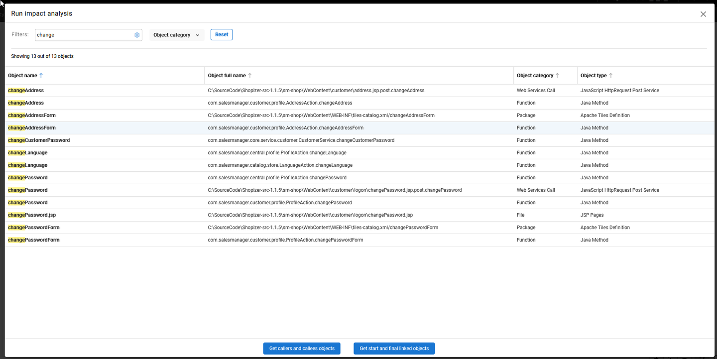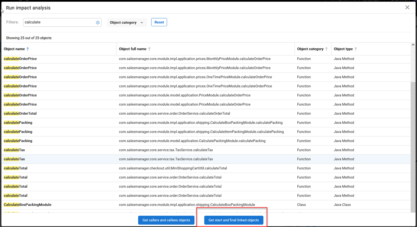 CAST Imaging offers two methods to run an automated impact analysis from a selected object: