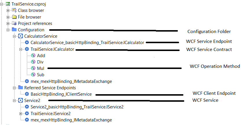 Proxy class method client side callLink WCF Service method on service side (via client endpoint) Links resolved by processing .svc file